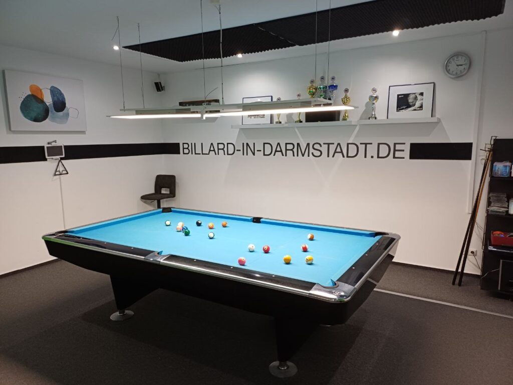Neben dem – fast schon obligatorischen – Streichen einiger Wandflächen haben wir das Erscheinungsbild mit einem Schriftzug unserer URL „BILLARD-IN-DARMSTADT.DE“ abgerundet.